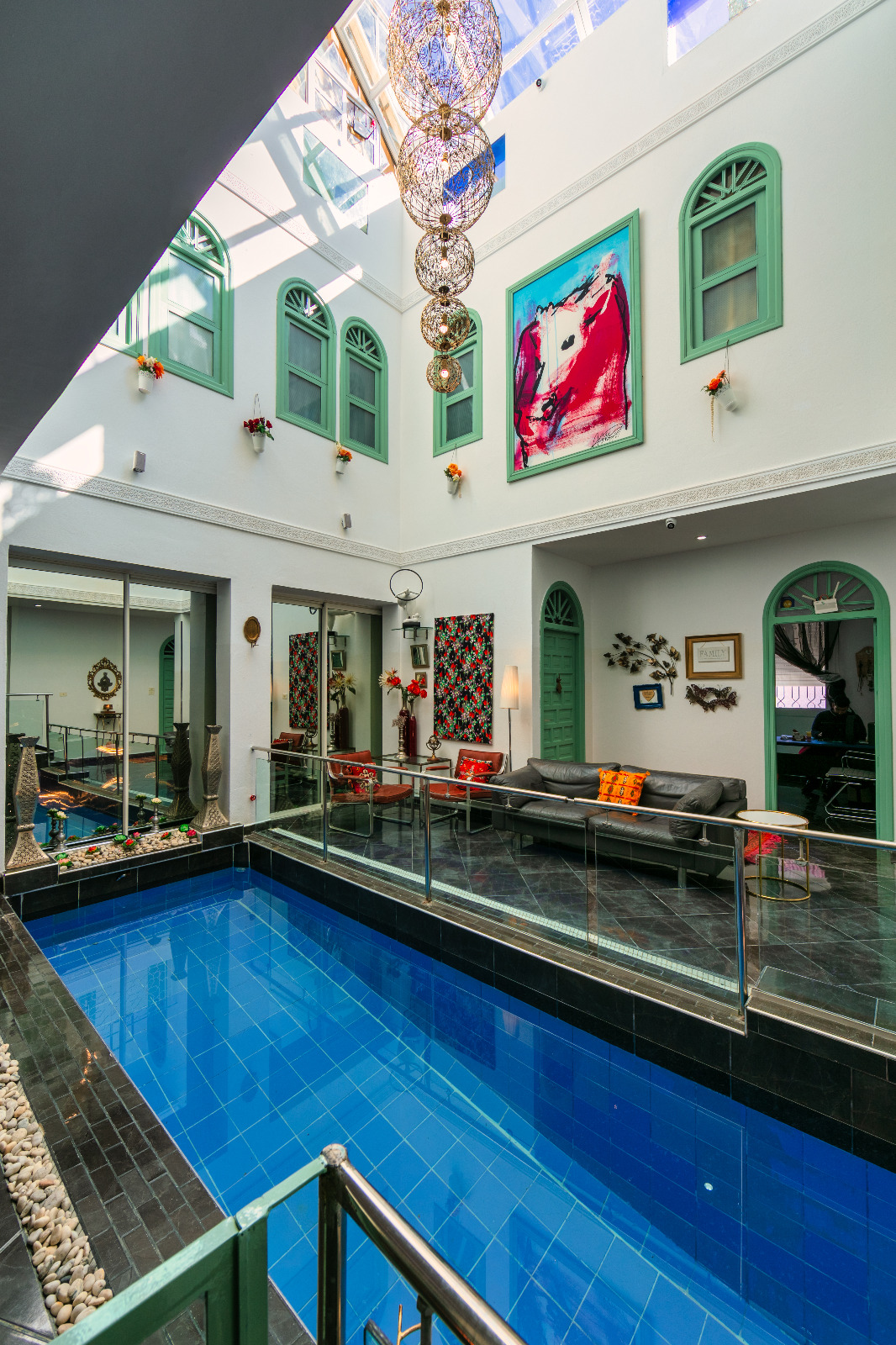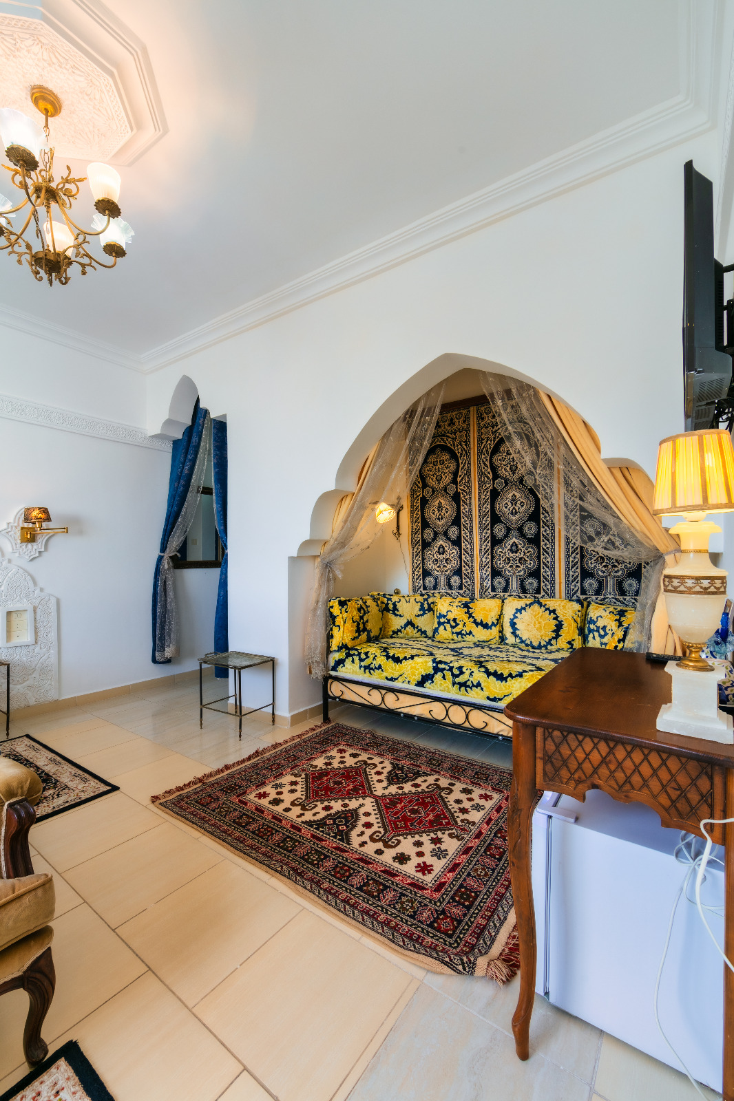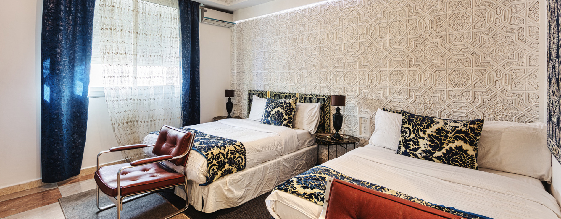 Les salles et les chambres sont décorées avec un goût exquis, mêlant les éléments traditionnels marocains aux touches modernes et artistiques. Les couleurs sont vives et audacieuses, les motifs sont complexes et délicats. Chaque détail a été soigneusement pensé pour créer une ambiance unique et décontractée.